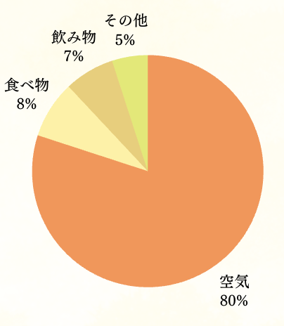 重量比で考えると、体が摂取する物質の約80%が空気なのです。